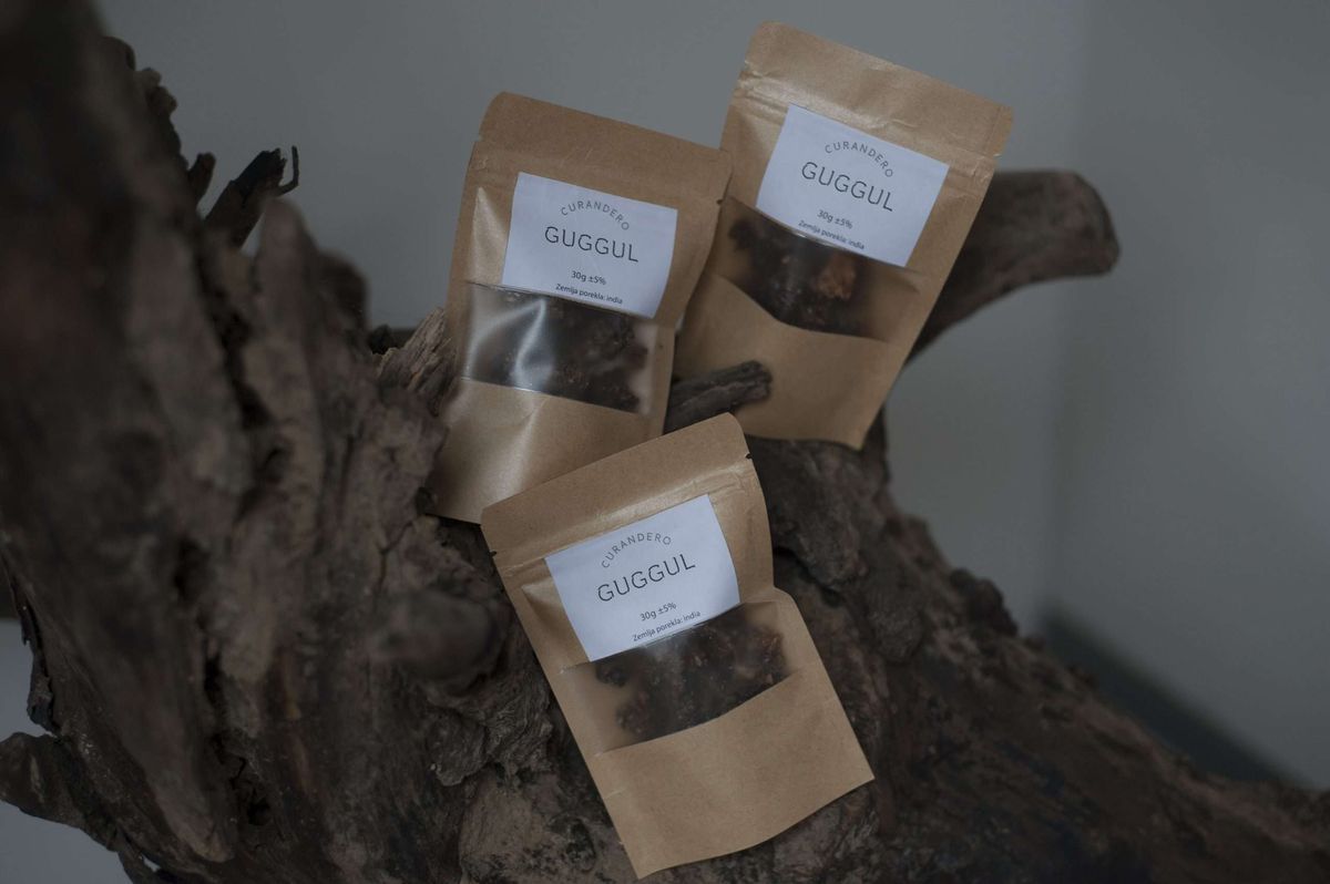 Guggul is also used as incense in magical or spiritual ceremonies in Tibet and Nepal. Guggul as a sweet and warm fragrance similar to Myrrh but more spicy/musky. It works grounding and expels negative energies. Moreover, the smell repels mosquitoes.