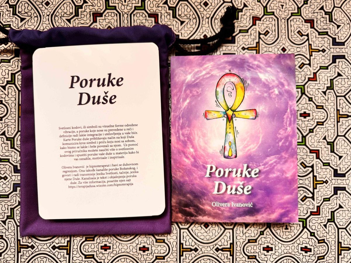 Karte Poruke duse priblizavaju nain na koji Dusa komunicira kroz simbol i priču koju nosi sa sobom, kako bismo se lakse i brže povezali sa njom. Uz pomoć ovog priručnika mozete nauciti vise o svetlosnim kodovima i spustiti poruke vase duse u materiju kako bi vas osnazile, motivisale i inspirisale.
