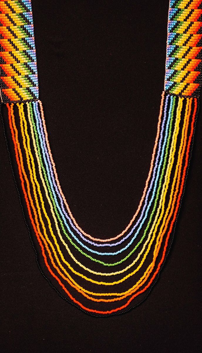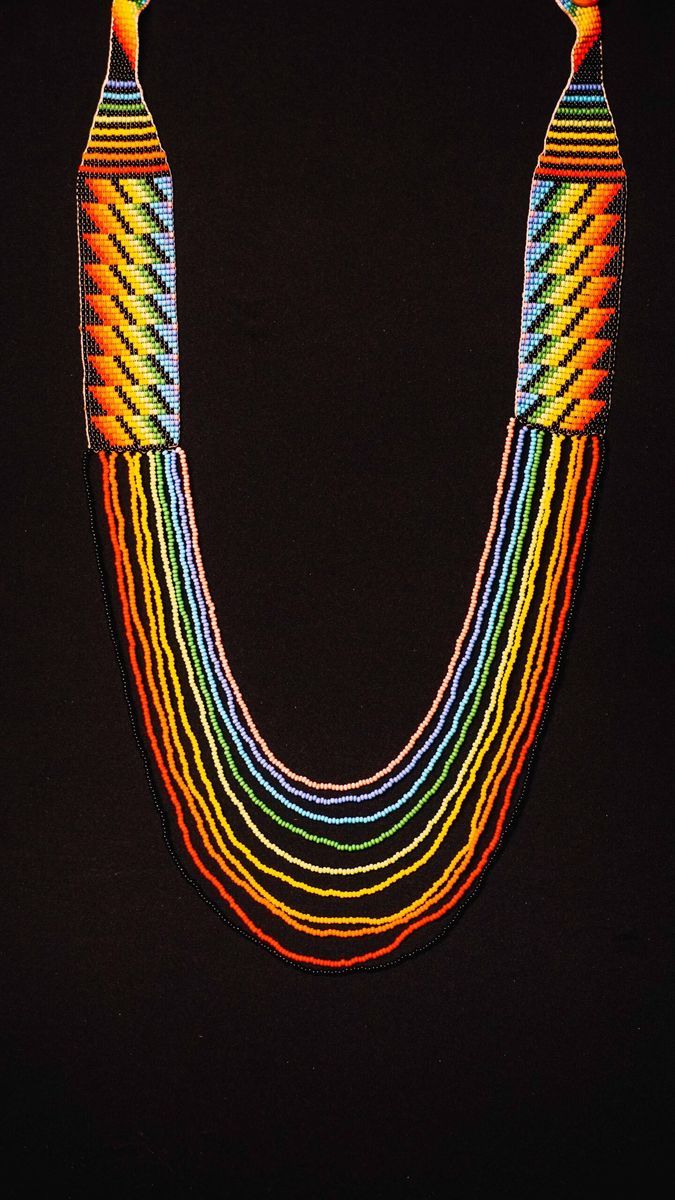 Duhovna ogrlica od Yawanawa plemena — sveto amazonsko perlanje, ručno rađeno u prašumi. U svakoj perli i šari je utisnuta simbolika i namera neprekinute duhovne tradicije džungle.